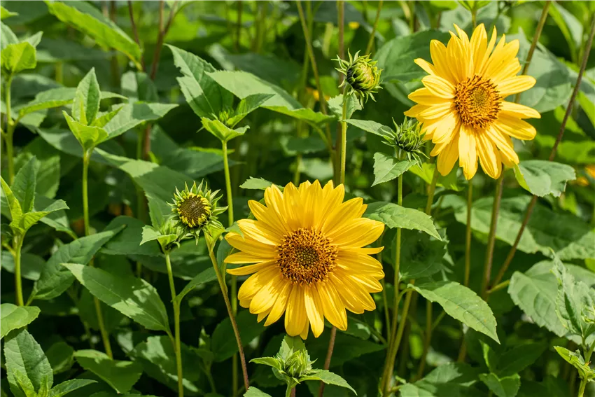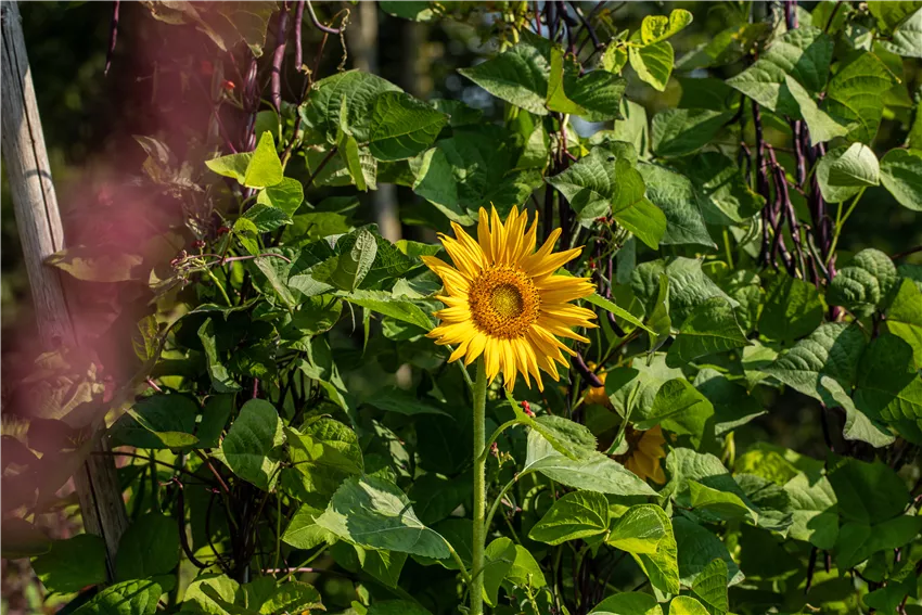Die perfekten Nachbarn für Sonnenblumen sollten natürlich gleiche oder zumindest ähnliche Ansprüche an den Standort und Boden haben. Das bedeutet: Sonne satt und viele Nährstoffe. Wie gut, dass es viele Sommerstauden gibt, die die Sonne regelrecht anbeten und sich über die wärmenden Strahlen freuen. So sind Sonnenhut, Sonnenbraut, Studentenblume und Löwenmäulchen die perfekten Nachbarn. Letztere öffnen ihre Blüten übrigens nur in der Sonne. Aber auch Dahlien sind beliebte Nachbarn für Sonnenblumen. Mädchenauge und Kapkörbchen liefern ebenfalls wichtige Nahrung für Insekten und Schmuckkörbchen und Herbst-Anemone machen neben den grossen Blüten der Sonnenblumen eine gute Figur. Im sonnigen und sommerlichen Staudenbeet dürfen diese Kombinationen also auf keinen Fall fehlen!