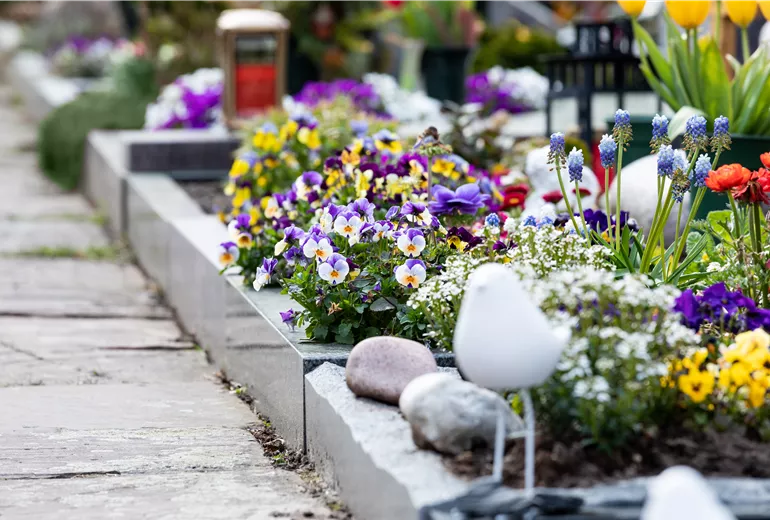 Eine ganzjährige Grabbepflanzung ist wichtig, wenn man möchte, dass die Gedenkstätte der Liebsten auch in der eigenen Abwesenheit gepflegt und ordentlich aussieht.