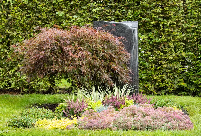Sträucher und Hochstämmchen für eine ganzjährige Grabbepflanzung