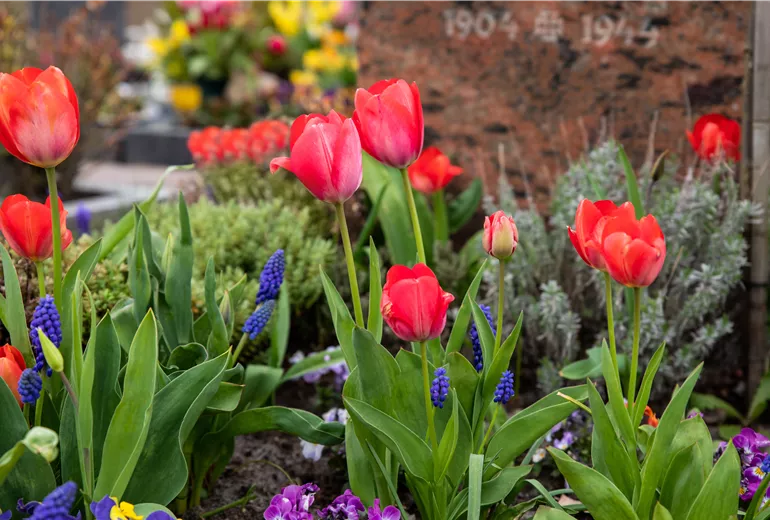 Ganzjährige Grabbepflanzung mit Blumenzwiebeln