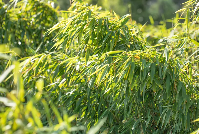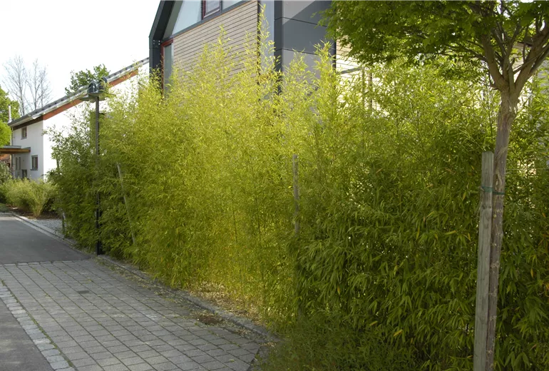 Wer nun also einen grossen Garten zur Verfügung hat und eine immergrüne Hecke anlegen will, aber keine Nadelgehölze bevorzugt, der hat mit Bambus gewonnen. Denn bei der Gartengestaltung mit Bambus kann man mit dem Gras im Handumdrehen wunderschöne Hecken anlegen, die nicht nur pflegeleicht sind, sondern mit ein paar Tipps und Tricks auch noch richtig blickdicht wachsen. Wie das geht? Bambushalme wachsen nur eine Saison. Schneidet man sie ab, wachsen sie also nicht weiter. Damit kann man im mittleren Bereich durch einen gezielten Rückschnitt die gewünschte Fülle erreichen und nach oben hin neue Halme wachsen lassen. Wichtig ist ein sandig-lehmiger, humoser und nährstoffreicher Boden. Darin fühlen sich nämlich alle Bambus-Arten wohl. Gepflanzt wird am besten im Frühjahr, Topfpflanzen können aber das ganze Jahr über gepflanzt werden, wenn keine Fröste zu erwarten sind. Dann kann man sich bei der Gartengestaltung mit Bambus die schönsten Hecken anlegen, die garantiert keine neugierigen Blicke der Nachbarn zulassen und ganz nebenbei auch das ganze Jahr über ein optisches Highlight sind. Gerade, wenn andere Pflanzen ihre Blätter abwerfen, macht Bambus richtig was her, denn er sieht exotisch aus, ist hierzulande aber absolut winterhart und fühlt sich in unseren Gärten richtig wohl.