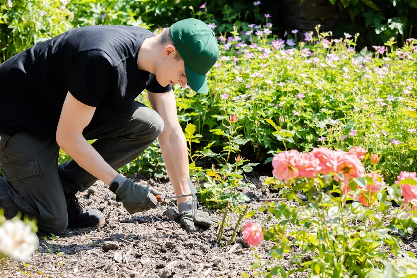 Wer bei der Pflanzung alles richtig macht, hat mit der anschliessenden Pflege nur wenig zu tun. Denn Beetrosen pflanzen und danach pflegen ist mit nur wenig Aufwand verbunden. Nach der Pflanzung kommt es aber auf eine ausreichende Bewässerung an. Gerade in den ersten Wochen sollte man daher noch händisch nachhelfen und sicherstellen, dass die Erde um die Pflanzen nicht austrocknet. Danach ist nicht mehr viel Pflege angesagt. Verblühtes kann einfach immer wieder mit der Gartenschere entfernt werden. Winterschutz brauchen Beetrosen nur im ersten Standjahr, wenn es besonders kalt werden soll. Ansonsten sind die Beetschönheiten robust und winterhart. Vier Wochen nach der Pflanzung kann man Rosen mit einem speziellen Rosendünger düngen, im Herbst sollte man aber darauf verzichten. Wer Beetrosen pflanzen möchte, kann sich mit Lavendel, Schleierkraut, Ginster und Lupinen auch gleichzeitig die passenden Nachbarn in den Garten holen.