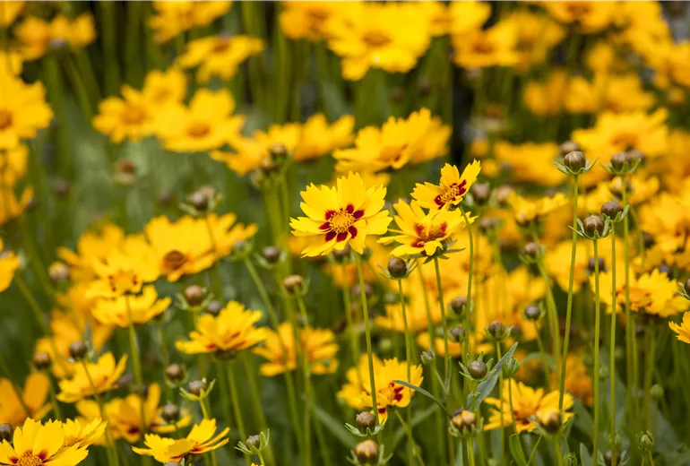 Das Mädchenauge gehört ebenfalls zu den mehrjährigen Dauerblühern, die sich durch ein besonders farbenfrohes Aussehen auszeichnen. Die Blütenkörbchen erscheinen von Juni bis Oktober und das jedes Jahr wieder. Einst nur als gelbblühendes Mädchenauge bekannt, gibt es Coreopsis – wie der botanische Name dieser mehrjährigen Staude lautet – heute in zahlreichen Farben wie Rot, Rostbraun, Rosa, Weiss. Auch mehrfarbige Mädchenaugen und unterschiedliche Grössen erleichtern das Gestalten eines attraktiven Staudenbeetes mit diesen attraktiven Blumen.