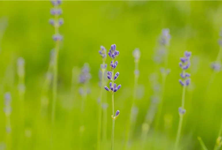 Der von unter her verholzende Lavendelstrauch stammt ursprünglich aus den Ländern des Mittelmeers, wo er ideale Bedingungen vorfindet. Dies sind ein warmes Klima und überwiegend trockene Böden. Dennoch fühlt er sich als mediterrane Gartenpflanze auch hierzulande wohl und verwandelt Ihren Garten jedes Jahr wieder neu in ein duftendes Blütenmeer.