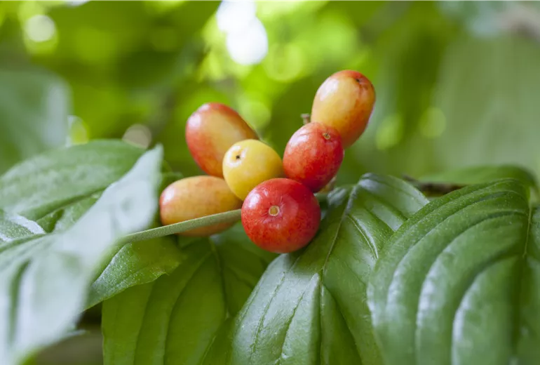 Bereits im Frühling lockt die Kornelkirsche oder Tierlibaum mit ihren hellgelben Blüten zahlreiche Hummeln und Bienen in den Garten. Die vitaminreichen Früchte wiederum stehen bei den Gartenvögeln der Schweiz ganz oben auf dem Speiseplan. Auch optisch ist die Kornelkirsche mit dem botanischen Namen Cornus mas ein wahrer Genuss. Denn von August bis Oktober leuchten ihre hellroten Früchte mit der frühen Herbstsonne um die Wette. Wenn Sie dieses vogelfreundliche Gehölz nicht zurückschneiden, kann sich mit der Zeit daraus ein kompakter Baum entwickeln, der Ihnen jedes Jahr einen üppigen Erntesegen verspricht. Denn die Kornelkirschen schmecken nicht nur den Vögeln gut. Die Früchte des Pfaffenhütchens Euonymus europaeus sind für Menschen dagegen giftig. Für Amseln, Rotkehlchen, Meisen und andere Wildvögel sind die orange- bis rosafarbenen Früchte, die ebenfalls ab August erscheinen, jedoch ein willkommener Leckerbissen. Auch mit dieser einheimischen Futterpflanze, die es in verschiedenen Grössen gibt, können Sie den Gartenvögeln der Schweiz also etwas Gutes tun.