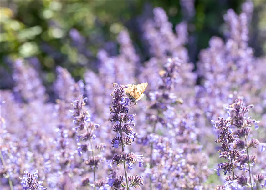 Auch im Bereich der Stauden und Sträucher gibt es Kandidaten, die mit Sonne perfekt zurechtkommen. Wenn es um Pflanzen für sonnige Standorte geht, dann kann man auch mal den Blick heben und ein bisschen in den Himmel schauen. Die beliebtesten Kandidaten bei den Stauden und Sträuchern sind Katzenminze, Steppensalbei und Schmetterlingsflieder. Der Schmetterlingsflieder hat als Pflanze für sonnige Standorte eine ganz besondere Bedeutung, denn er sorgt im Garten für Leben. Seinen Namen hat er nicht umsonst und zieht zur Blütezeit unzählige Schmetterlinge an. Das lässt jedes Gartenfreundeherz höherschlagen, oder? Katzenminze und Steppensalbei haben als Pflanzen für sonnige Standorte den Vorteil, dass ihre Blüten in der Sonne einen einmaligen Duft verströmen. Je wärmer die Sonne auf die Blüten scheint, desto intensiver ist der Duft. Und den riechen nicht nur wir, auch viele Insekten freuen sich über die Blüten. Im Sommer werden die Pflanzen daher gerne von Biene, Hummel und Co. angeflogen und bieten eine ausreichende Nahrungsquelle. Unter den Kletterpflanzen sind Kletterhortensien und die Trompetenblume die perfekten Pflanzen für sonnige Standorte.