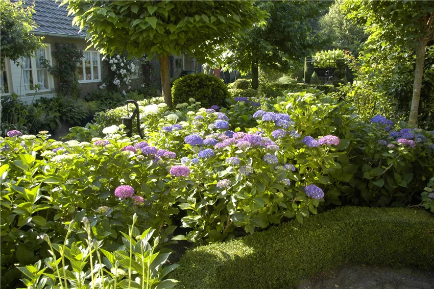 Hortensien verblüffen mit ihrer vielfältigen Farbenpracht und treten innerhalb des Gartens als tolle Eye-Catcher in Erscheinung.