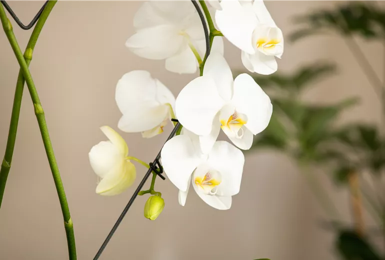 Die beliebtesten Zimmerpflanzen überhaupt sind vermutlich die Schmetterlingsorchideen. Sie sind relativ pflegeleicht und eignen sich gut für die Kultivierung auf der heimischen Fensterbank. Mit ihrem senkrechten Wuchs und aufgrund der fehlenden Seitenblätter sehen sie schon recht exotisch aus – und sie sind es auch. In ihrer tropischen Heimat wachsen Orchideen als sogenannte Aufsitzerpflanzen heran, die auf anderen Pflanzen leben, ohne durch diese Nahrung zu beziehen. Ihre beinahe dickfleischigen Wurzeln verwenden sie sogar teilweise zur Photosynthese. Die Phalaenopsis – wie der botanische Name der Schmetterlingsorchidee lautet – verfügt meist über mindestens zwei und höchstens sechs Blätter, die zum Teil eine trocken-ledrige Konsistenz aufweisen. Aufgrund der ausgesprochenen Vielfalt dieser Orchideen-Hybridzüchtung fallen auch die Blattgrösse- und Farbe dieser Zimmerpflanzen sehr unterschiedlich aus. Das gilt ebenfalls für die eindrucksvollen Blüten, die sich meist bogenartig hängend oder aufrechtstehend an den nackten Trieben befinden. Die Blüten der Phalaenopsis erinnern tatsächlich an zwei spiegelgleiche Schmetterlingsflügel, weshalb diese Hybrid-Orchidee hierzulande als Schmetterlingsorchidee bekannt geworden ist.
