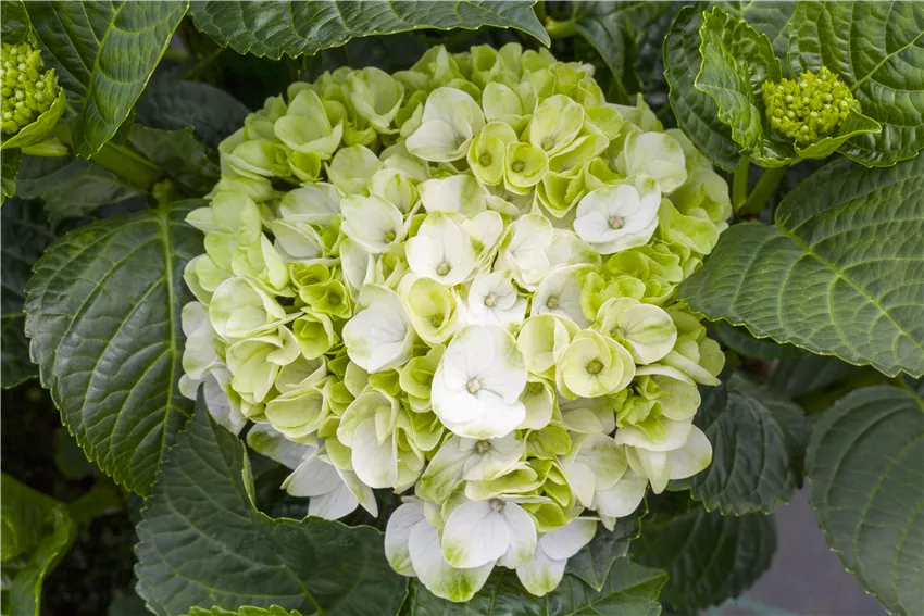 Die Teller-Hortensien gehören ebenfalls zu den verbreiteten Vertretern der Hortensienvielfalt. Charakteristisch sind ihre kleineren, flachen Blütenstände. Teller-Hortensien sind recht frosthart und pflegeleicht. Ausserdem lassen sie sich durch ihre etwas dezenteren Blüten sehr gut mit anderen Pflanzen im Beet kombinieren. Unter der grossen Hortensienvielfalt sind aber noch zahlreiche andere Varianten zu finden, die im Garten zu einem besonderen Blickfang werden.