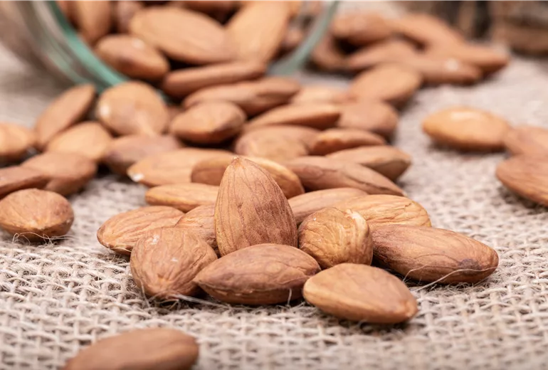 Mandeln, die nicht zu den Nüssen gehören, wie viele meinen, zählen zu den Steinfrüchten wie Pfirsiche und Aprikosen. Wer in seinem Garten einen Mandelbaum mit essbaren Mandeln hat, kann mit dem Verzehr von Mandeln einen wichtigen Beitrag für die eigene Gesundheit leisten. Denn diese stecken voller gesunder Inhaltsstoffe. Obwohl Mandeln bis zu 50 Prozent aus Fett bestehen, zählen sie dennoch nicht zu den Dickmachern. Der grösste Fettanteil in den Mandeln besteht nämlich überwiegend aus essentiellen Fettsäuren, die der Körper nicht selbst herstellen kann und die ihm deshalb regelmässig zugeführt werden müssen. Neben den ungesättigten Fettsäuren enthalten Mandeln wertvolle Proteine, Vitamin E und B, Kalzium, Kalium und auch Magnesium. Ausserdem gehören auch Eisen, Zink und verschiedene Ballaststoffe sowie sekundäre Pflanzenstoffe zu ihren Inhaltsstoffen.