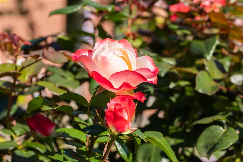 Wer seinen Garten neu oder umgestalten möchte, der hat die Wahl aus einer Vielzahl unterschiedlicher Pflanzen. Aber eine Pflanze sollte in keinem Garten fehlen: die Rose. Rosen kaufen war noch nie so einfach und bei der riesigen Auswahl findet sich mit Sicherheit für jeden Geschmack die passende Rose. Beim Rosen kaufen hat man nicht nur die Wahl zwischen den unterschiedlichsten Farben, sondern vor allem auch zwischen den verschiedensten Sorten. Denn Rose ist nicht gleich Rose. Wer besonders märchenhaftes Flair im Garten haben möchte, der sollte auf Kletterrosen zurückgreifen und mit diesen besonderen Pflanzen Hauswände, Spaliere oder Rosenbögen begrünen und zum Blühen bringen. Kletter- und Ramblerrosen sind besonders beliebt in Gärten, die viel Platz zum Klettern bieten. Wer buchstäblich die Nase nicht voll von duftenden Pflanzen im Garten bekommen kann, für den sind Wildrosen und Duftrosen die beste Wahl. Diese Blüten sehen nicht nur besonders hübsch aus, sie verströmen auch einen einmaligen Duft. Und was wäre ein Garten ohne Edelrosen? Diese besonderen Blüten dürfen nicht nur bei Rosenliebhabern nicht fehlen. Die Vielfalt ist gross und in den unterschiedlichsten Farben machen Strauchrose, Kletterrose, Duftrose und Co. eine richtig gute Figur.