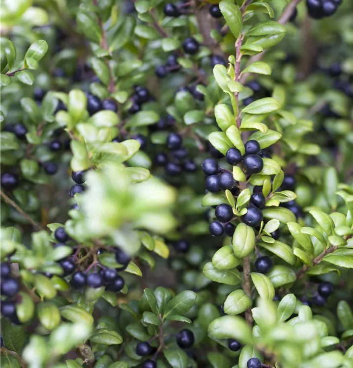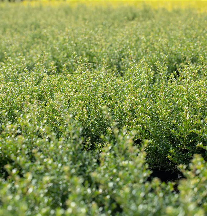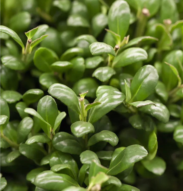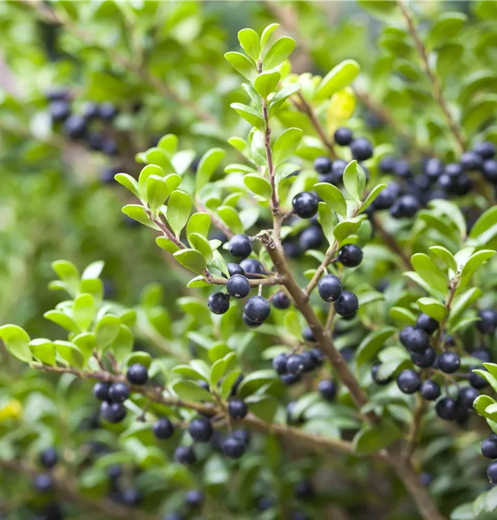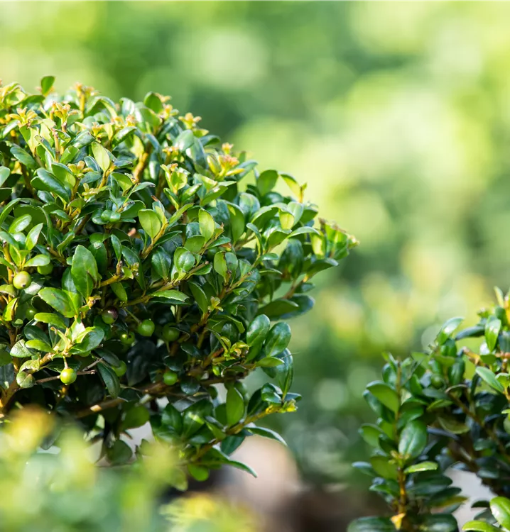 Der Löffel-Ilex 'Convexa' (Ilex crenata) trägt rundliche, immergrüne Blätter, die eine schöne mittelgrüne Farbe haben. Zwischen Mai und Juni bringt er cremeweisse Blüten hervor, aus denen sich zu Oktober zierene, schwarze Früchte entwickeln. Als aufrechter, dichter Strauch erreicht der Löffel-Ilex 'Convexa' Grössen von bis zu 2 m Höhe und 2 m Breite. Am besten kommt er zur Geltung, wenn Sie ihm einen halbschattigen Standort geben, optimalerweise mit durchlässigem, humosem, nährstoffreichem Boden und einer ausreichenden Wasserversorgung.