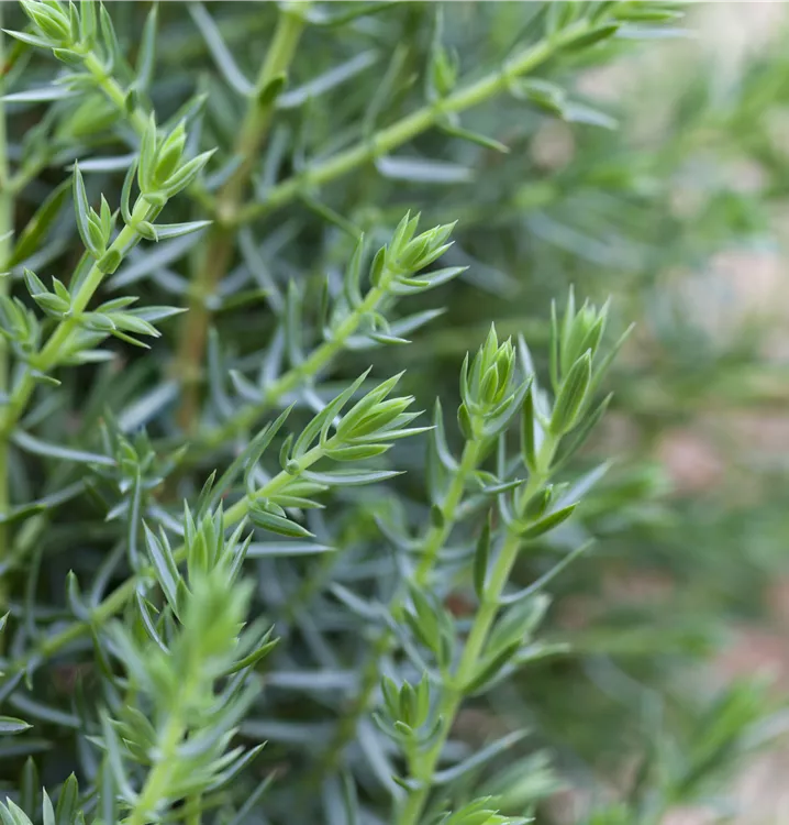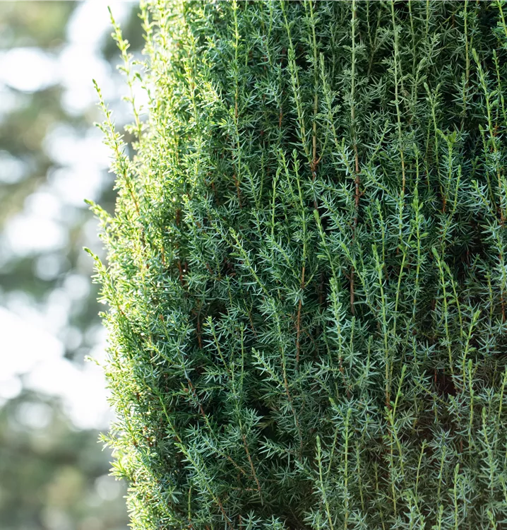 Die nadelförmigen Blätter sind schön grau-grün gefärbt. Zudem ist der Wildwacholder 'Arnold' immergrün.