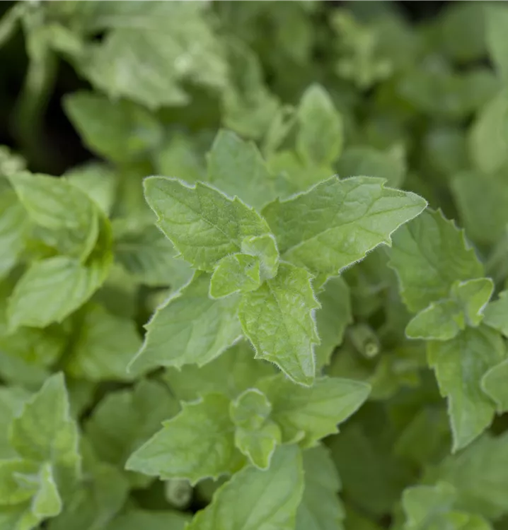 Die eiförmigen, gezähnten Blätter sind mittelgrün gefärbt und eine erfrischende Bereicherung in der Küche.