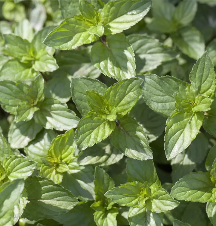 Die Pfefferminze (Mentha x piperita) ist beliebt durch ihre erfrischend schmeckenden, mittelgrünen Blätter. Am besten können sie von Juli bis Oktober geerntet werden. Von Mai bis Oktober trägt sie zudem rosafarbene Blüten. Damit diese Kräuterpflanze ihr volles Aroma entfalten kann, braucht sie einen sonnigen Standort und eine durchlässige, humose, nährstoffreiche Erde. Natürlich sollten Sie auch auf eine ausreichende Wasserversorgung achten. Mit ihrem ausläuferbildenden Wuchs wird die Pfefferminze etwa 40 cm hoch und 50 cm breit und macht nicht nur im Kräutergarten eine gute Figur, sondern kann auch in Kübeln und Töpfen kultiviert werden.