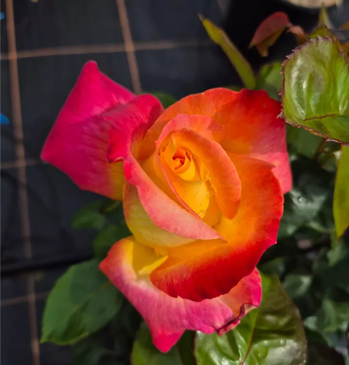 Die Edelrose 'Oriental Peace'® schätzt eine regelmässige Wasserversorgung, die Erde darf aber auch mal antrocknen.