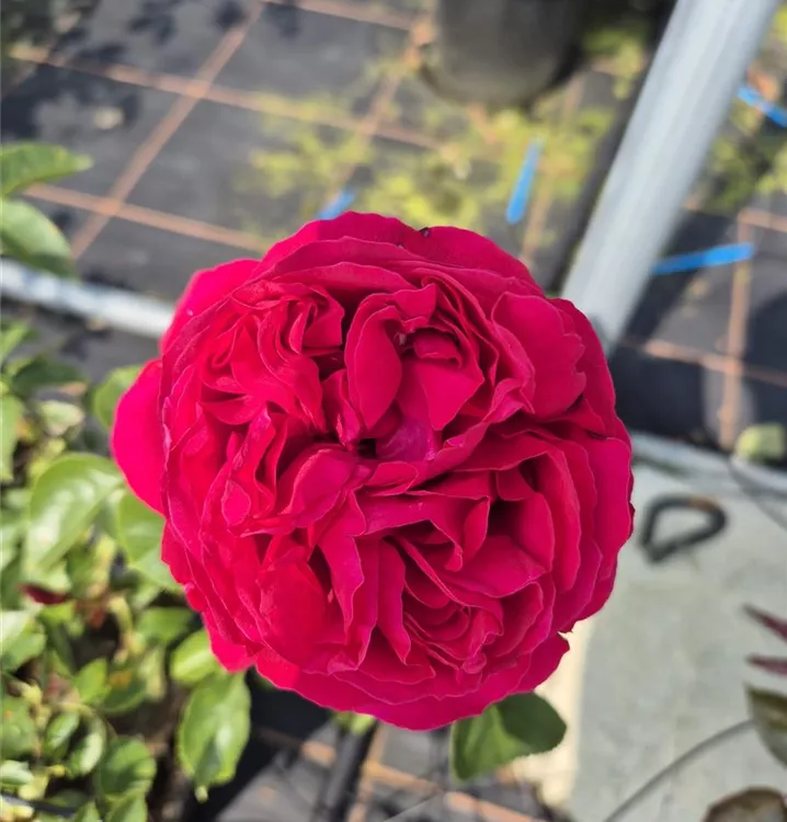 Die Strauchrose 'Red Eden Rose'® schätzt eine regelmässige Wasserversorgung, die Erde darf aber auch mal antrocknen.