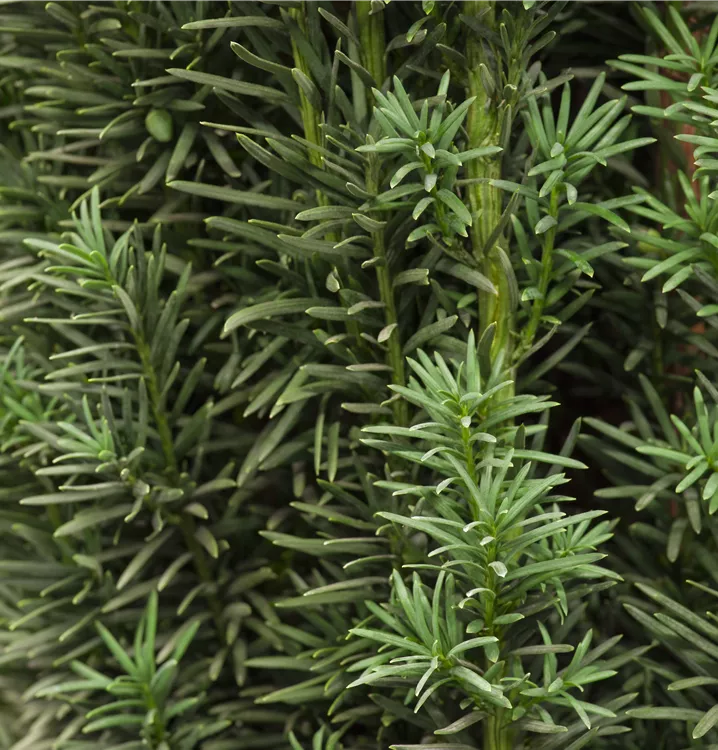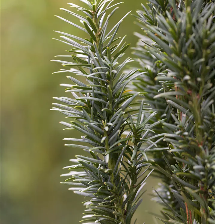 Die nadelförmigen, 1 - 3 cm grossen Blätter sind schön mittelgrün gefärbt. Zudem ist die Schmale Säuleneibe 'Fastigiata Robusta' immergrün.