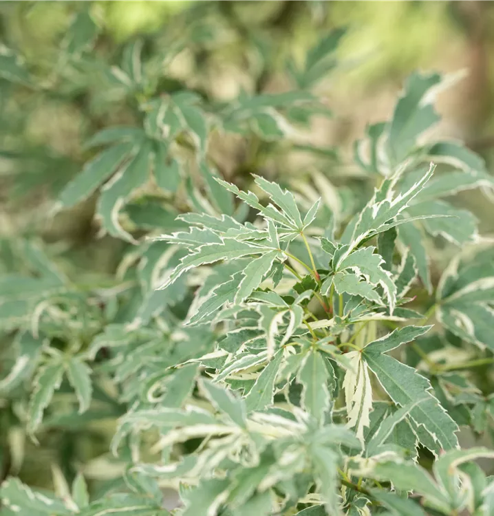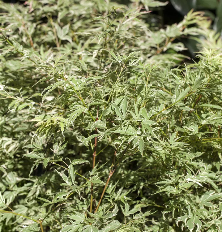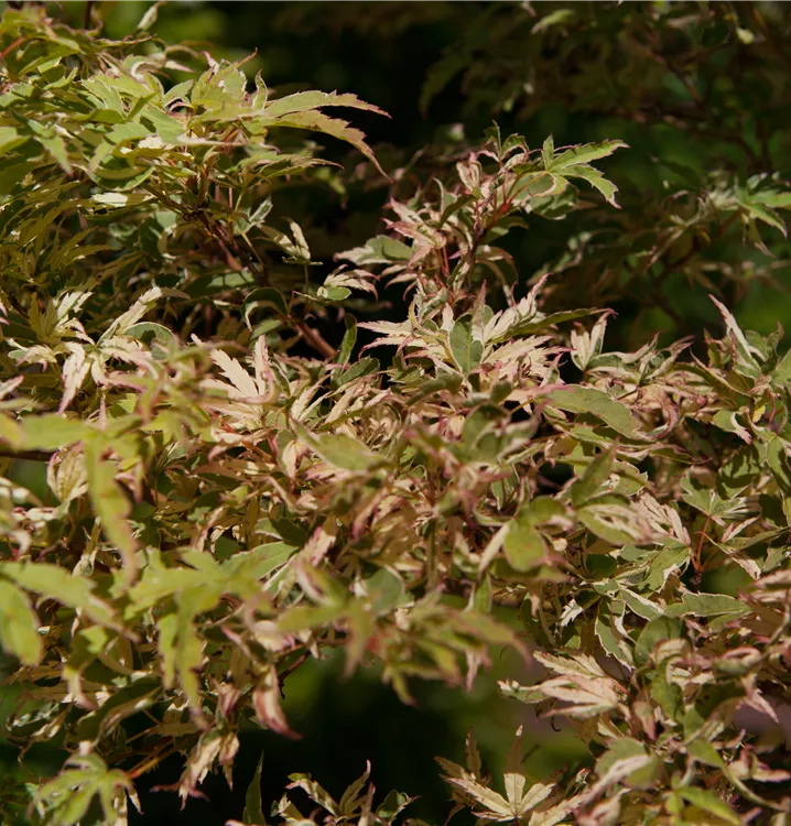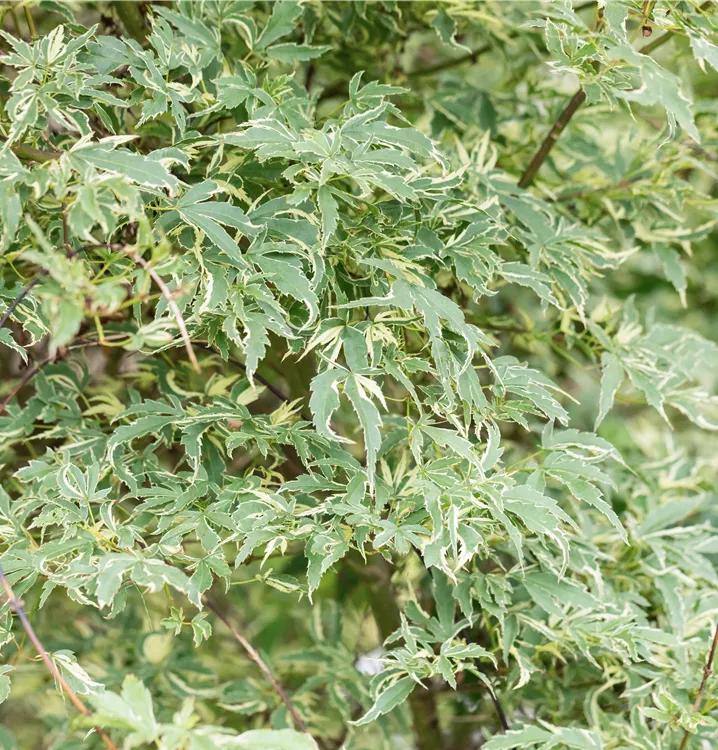 L'Erable palmé 'Butterfly' (Acer palmatum) porte des feuilles caduques découpées et lobées, d'une belle couleur verte et blanche. En automne, elles prennent en revanche une teinte rouge écarlate. En tant que grand arbuste ou buisson à plusieurs troncs, en forme de parapluie, pittoresque et avec une couronne, le Erable palmé 'Butterfly' atteint des tailles allant jusqu'à 3 m de haut et 3 m de large. Il est le mieux mis en valeur si vous lui donnez un emplacement ensoleillé, de préférence avec un sol perméable et humifère et un apport d'eau suffisant.