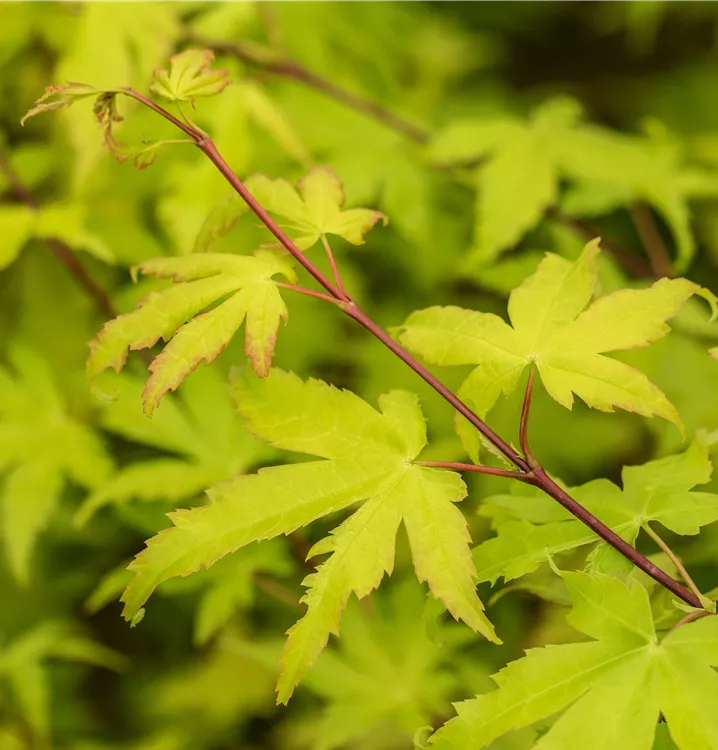 L'Erable 'Jordan' (Acer shirasawanum) porte des feuilles caduques lobées, d'une belle couleur jaune-vert. Le bourgeonnement jaune vaut déjà le coup d'œil, tandis qu'elles deviennent jaunes en automne. Le Erable 'Jordan' atteint des tailles allant jusqu'à 3 m de haut et 3 m de large en tant qu'arbuste érigé, buissonnant et retombant. Il est le mieux mis en valeur si vous lui donnez un emplacement ensoleillé ou semi-ombragé, de préférence avec un sol perméable et humifère et un apport d'eau suffisant.
