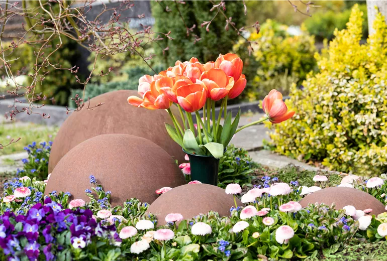 L'aménagement d'une tombe ne doit pas toujours être triste et gris. La preuve en est, nos fleurs printanières annuelles et vivaces que vous pouvez composer à votre guise. Ces fleurs précoces aux couleurs vives sont rapidement mises en place et nécessitent peu d’entretien. Les fleurs printanières classiques comme les jonquilles et les jacinthes apparaissent d'elles-mêmes chaque printemps, donnant à la tombe un aspect attrayant.