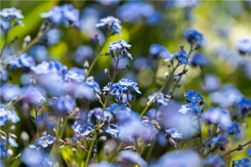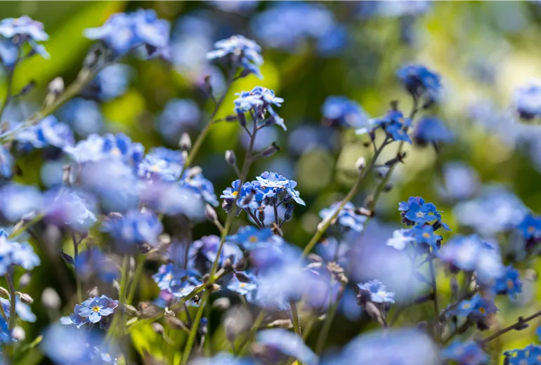Le délicat myosotis des forêts porte également un caractère symbolique par son nom et, est donc une fleur printanière très appréciée pour la plantation de tombes. D'avril à début juillet, cette plante vivace montre des fleurs d'un bleu intense. Le myosotis des forêts existe également avec des fleurs blanches ou rose pâle. Le myosotis des forêts est disponible en tant que plante bisannuelle, mais aussi en tant que plante vivace, connue sous le nom botanique de Myosotis sylvatica. Les tiges présentent des ramifications abondantes, chacune portant une délicate fleur à son extrémité. La plante atteint une hauteur d'environ 45 centimètres et développe près du sol des feuilles en rosette pétiolées, ainsi que des feuilles velues et un peu plus larges sur la tige. Vous pouvez combiner cette plante vivace à l'aspect presque filigrane avec d'autres plantes à floraison printanière ou bien garnir la tombe à fleurir avec le myosotis des forêts sur une grande surface. Contrairement aux narcisses et aux jacinthes, il ne s'agit pas de fleurs à bulbe. Vous pouvez donc planter le myosotis des forêts en pot, du printemps à l'automne.