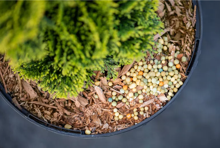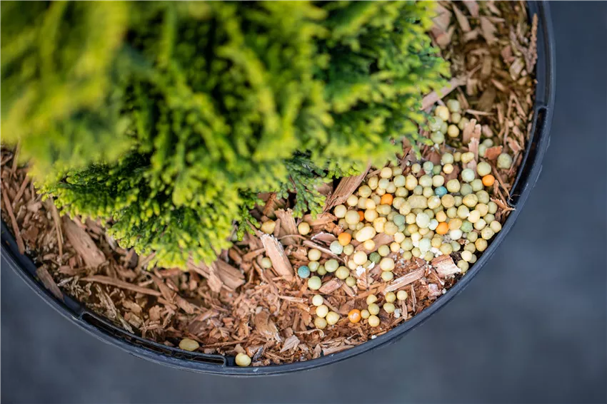 En plus de ces trois éléments nutritifs principaux, un engrais normal contient généralement d’autres éléments nutritifs tels que le calcium, le soufre, le magnésium et le fer. Les éléments nutritifs essentiels devraient également être inclus dans un engrais universel complet. Lorsque cet engrais est incorporé dans le sol autour de la plante, cette dernière absorbe exactement les nutriments dont elle a besoin à ce moment-là. Cela est avantageux non seulement pour les plantes à croissance rapide. Cependant, comme cela entraîne une accumulation de nutriments non utilisés dans le sol pendant une période plus longue, tous les engrais universels classiques ne conviennent pas à toutes les plantes. De plus, un besoin régulier en certains nutriments spécifiques ne peut pas être satisfait de cette manière. Dans ce cas, il est plus judicieux d’utiliser un engrais spécial, spécifiquement adapté aux besoins nutritifs de la plante. Une fertilisation adéquate ne doit donc pas entraîner une carence, ni une suralimentation de certains nutriments. Pour les plantes qui ont régulièrement besoin de petites quantités de différents nutriments, il est préférable d’utiliser un engrais longue durée de haute qualité.