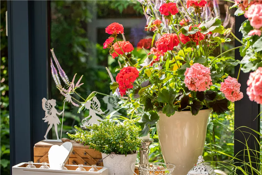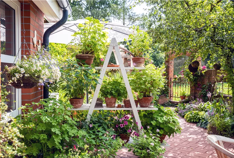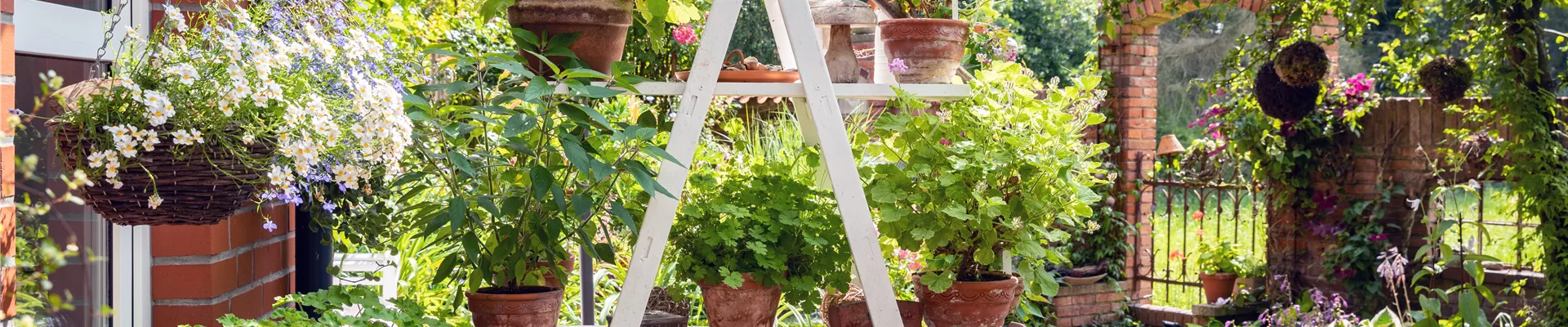Pour l'extérieur, il est préférable d’utiliser, si possible, des contenants résistants au gel et aux UV. En effet, si vous utilisez des matériaux très sensibles comme la terre cuite, l'eau risque de pénétrer dans les pores et votre pot risque de se fissurer ou de se briser en hiver. C'est pourquoi il est conseillé de protéger les pots en terre cuite contre le gel en hiver ou de les rentrer à l'intérieur. Il existe également des pots en plastique de haute qualité, avec une apparence semblable à la terre cuite. Ceux-ci sont en outre plus légers que les pots en terre cuite véritables, et peuvent rester à l’extérieur tout l'hiver. Les bacs à plantes permettent de créer des structures sur la terrasse ou dans le jardin, et de délimiter visuellement différents espaces. Les plantes ornementales ne sont pas forcément les seules à se sentir à l'aise dans des bacs suffisamment grands. Certains arbres fruitiers ou à baies poussent également très bien dans nos bacs. Vous pouvez équiper les bacs rectangulaires d'un support et les utiliser pour des plantes grimpantes attrayantes. Les plantes grimpantes à fleurs comme les capucines, mais aussi les légumes comme les concombres ou les courgettes, deviennent rapidement des attractions comestibles dans un tel bac.