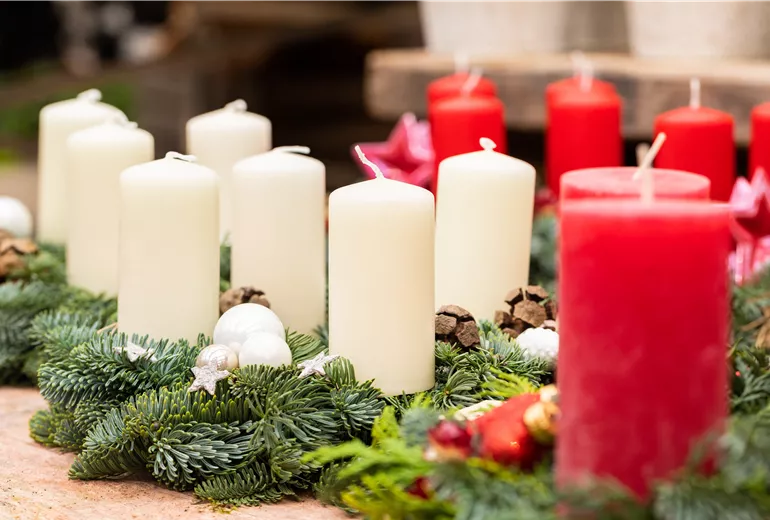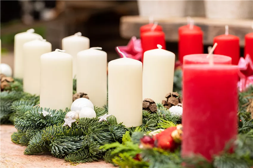 Une couronne de l'Avent faite maison n'attire pas seulement l'attention sur une table joliment dressée pour Noël. Elle diffuse également un parfum délicieux et annonce déjà le ton pour les jours de fêtes à venir. Il n'est pourtant pas si difficile de fabriquer soi-même une couronne de l'Avent. Pour créer votre propre couronne de l'Avent, vous avez seulement besoin de quelques matériaux. Vous pouvez même en trouver certains dans votre jardin ou dans la nature. Les branches de sapin Nordmann, également connu sous son nom botanique Abies nordmanniana, sont un classique parmi les branches utilisées pour la couronne de l'Avent. Les branches de sapin Nordmann retiennent bien l'humidité et ne perdent donc pas rapidement leurs aiguilles. Le vert foncé des branches du sapin Nordmann forme un magnifique contraste avec les bougies blanches ou rouges et les autres décorations de Noël. Si vous préférez des couleurs plus claires, les branches de thuya, de pin sylvestre dont le nom botanique est Pinus schwerinii ou de faux-cyprès Chamaecyparis, conviennent également.