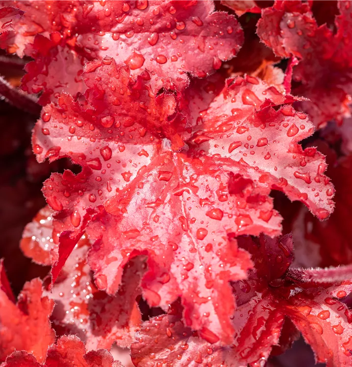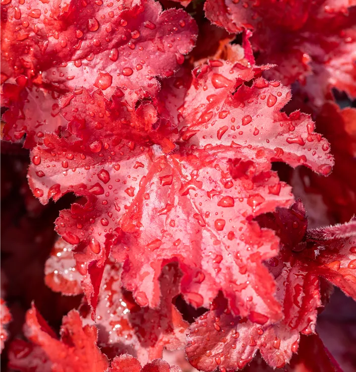 Les feuilles sont particulièrement belles à voir. La couleur rouge vif des feuilles contribue alors particulièrement à l'ornementation des feuilles. De plus, le Purpurglöckchen 'Forever Red' est persistant.