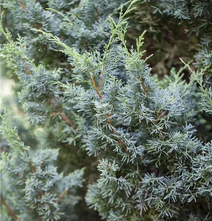 Le Genévrier de Chine (Juniperus chinensis) porte des aiguilles persistantes en forme d'écailles, d'une belle couleur bleu-gris. En tant qu'arbuste en forme d'entonnoir, le Genévrier de Chine atteint des tailles allant jusqu'à 2,5 m de hauteur et 1,5 m de largeur. Il est le mieux mis en valeur si vous lui donnez un emplacement ensoleillé ou semi-ombragé, idéalement avec un sol perméable, riche en humus et en nutriments, et un apport d'eau suffisant.