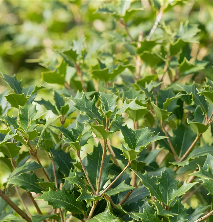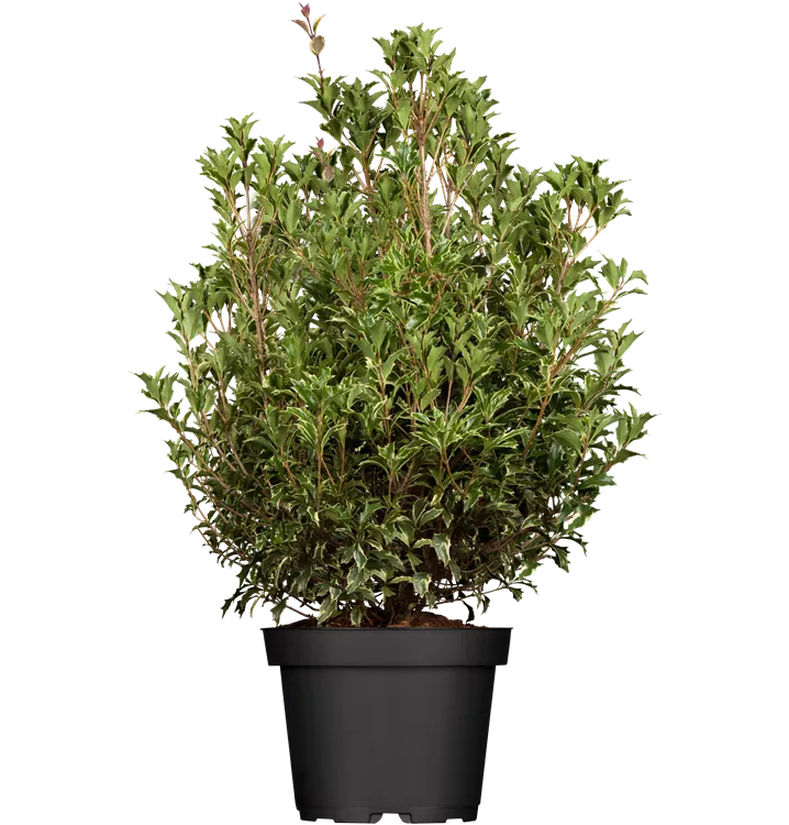 La Osmanthe (Osmanthus heterophyllus) porte des feuilles ovoïdes, dentées et persistantes, d'une belle couleur vert foncé. Entre septembre et octobre, il produit des fleurs blanches au parfum agréable. En tant qu'arbuste arrondi et érigé avec une couronne, le Osmanthe atteint des tailles allant jusqu'à 4 m de haut et 3 m de large. Il est le mieux mis en valeur si vous lui donnez un emplacement mi-ombragé à ombragé, à l'abri du vent, de préférence avec un sol perméable et humifère et un apport d'eau suffisant.
