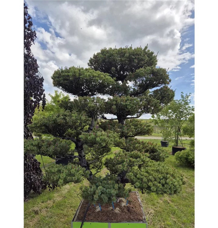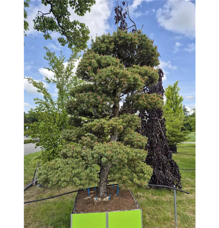 Le Le pin blanc 'Glauca' (Pinus parviflora) porte des aiguilles persistantes d'une belle couleur bleu argenté. En tant que petit arbre érigé, étalé et bizarre avec une couronne lâche, le Le pin blanc 'Glauca' atteint des tailles allant jusqu'à 10 m de haut et 7 m de large. Il est le mieux mis en valeur si vous lui donnez un emplacement ensoleillé, de préférence avec un sol perméable, calcaire et peu acide, et un apport d'eau suffisant.