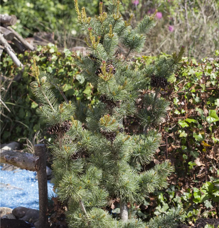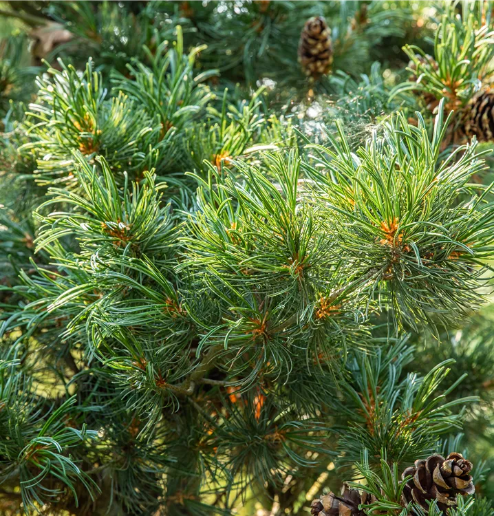 Le Le pin blanc 'Glauca' (Pinus parviflora) porte des aiguilles persistantes d'une belle couleur bleu argenté. En tant que petit arbre érigé, étalé et bizarre avec une couronne lâche, le Le pin blanc 'Glauca' atteint des tailles allant jusqu'à 10 m de haut et 7 m de large. Il est le mieux mis en valeur si vous lui donnez un emplacement ensoleillé, de préférence avec un sol perméable, calcaire et peu acide, et un apport d'eau suffisant.