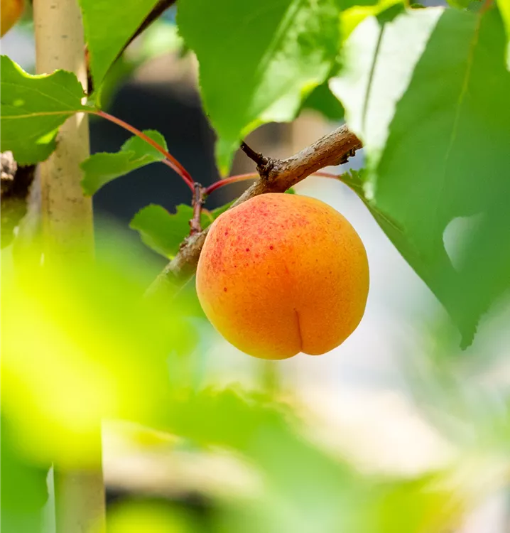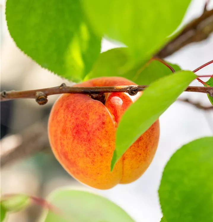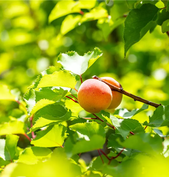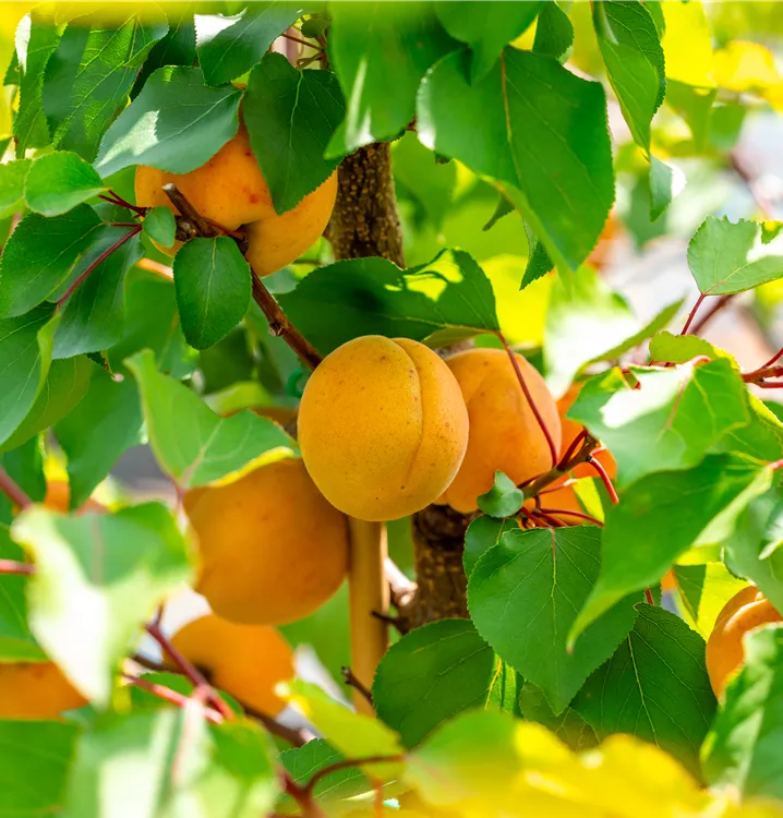 Sous forme de jus, dans des confitures, pour des gâteaux ou simplement frais comme en-cas, les fruits sucrés du Abricotier 'Royal' (Prunus armeniaca) sont bien sûr particulièrement délicieux lorsqu'ils sont récoltés par soi-même. À partir de la mi-août, les fruits ronds sont mûrs pour la récolte. Leur peau comestible est alors colorée en jaune et cache une chair dorée et juteuse. Pour une récolte abondante et des fruits savoureux, il faut donner à la Abricotier 'Royal' un emplacement ensoleillé. L'idéal est une terre perméable et riche en nutriments, et bien sûr un apport d'eau suffisant.