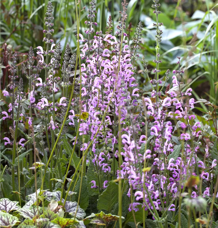 Les plates-bandes et les bordures peuvent être aménagées de manière attrayante avec la Sauge des prés 'Rose Rhapsody' (Salvia pratensis). Ses fleurs en forme de lèvres, d'un beau rose, apparaissent de juin à août. Son apparence est complétée par des feuilles vert foncé en forme de cœur. L'Sauge des prés 'Rose Rhapsody'@ convient particulièrement bien aux endroits ensoleillés. Plantez-la dans un sol perméable et calcaire et veillez à ce que l'eau ne stagne pas. Cette plante vivace se développera alors en un beau spécimen d'environ 60 cm de haut et 50 cm de large, érigé et formant des tas.