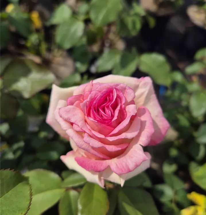 La Rosier 'Souvenir de Baden-Baden' (rose) apporte une touche de romantisme et répand une élégance naturelle dans le jardin. Son effet repose naturellement sur ses fleurs très doubles en forme de coupe, qui séduisent tant par leur couleur blanc crème et rose que par leur agréable parfum. Elles apparaissent régulièrement tout au long de la saison, jusqu'aux premières gelées. Le feuillage penné est également très agréable à regarder avec sa couleur vert foncé. Le Rosier 'Souvenir de Baden-Baden' est le mieux mis en valeur si vous lui donnez un emplacement ensoleillé, de préférence avec un sol perméable et riche en nutriments. Dans ces conditions, ce rosier se développe en un petit arbuste touffu et érigé pouvant atteindre 1 m de hauteur et 40 cm de largeur.